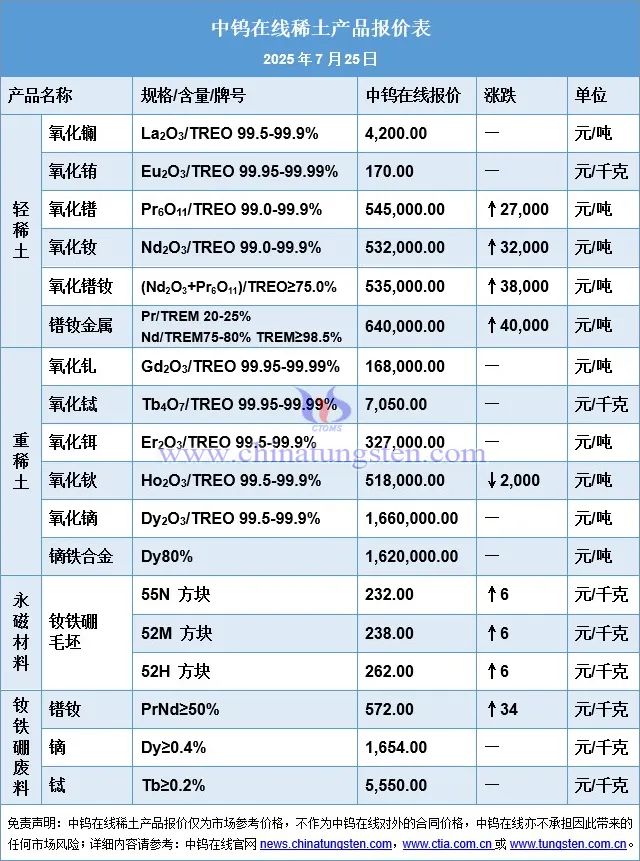 2025年7月25日稀土价格一览配资平台官网网址