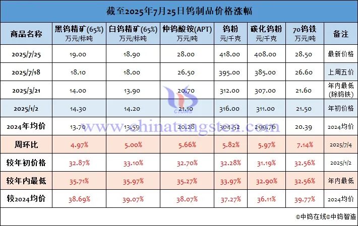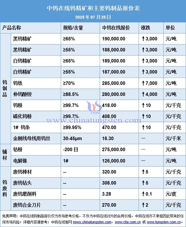 2025年7月25日钨市场行情